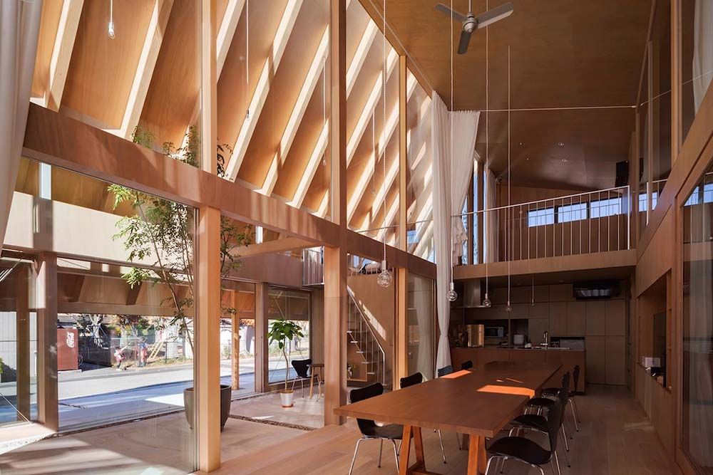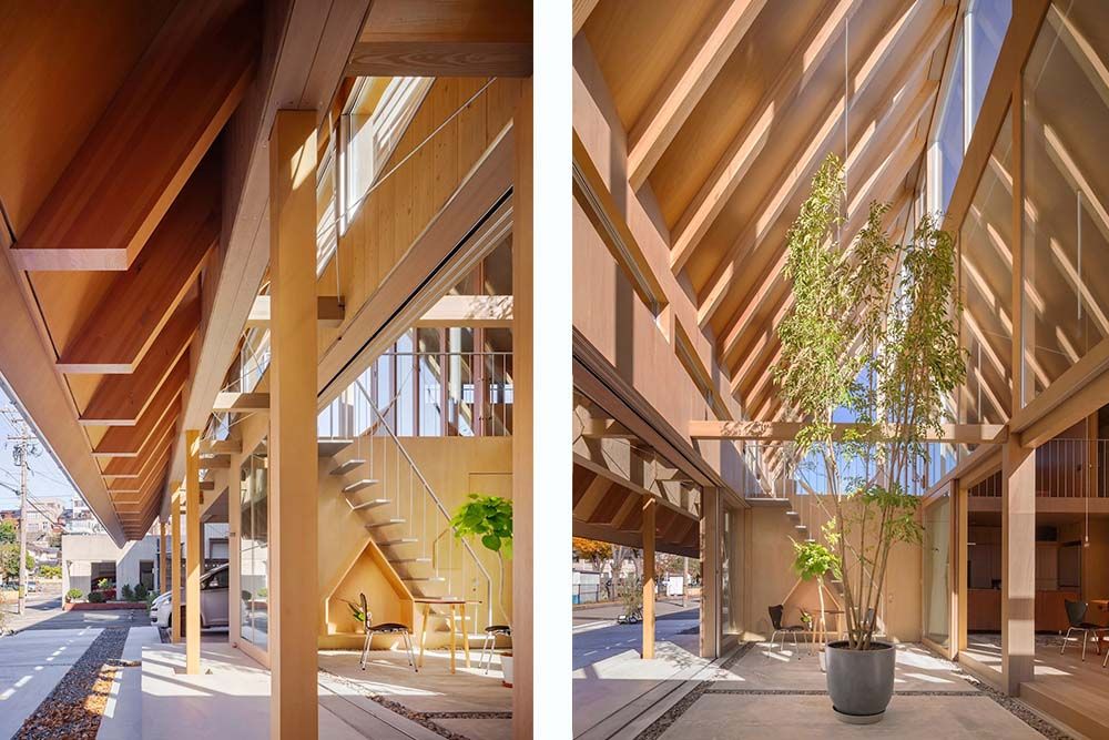 Dans le projet, le ‘doma’, lieu d’interaction avec les hôtes selon l’architecture traditionnelle Hokuriku, est réimaginé comme un jardin intérieur doté d’un grand toit qui capte la lumière du soleil, permettant ainsi de vivre en plein air même par mauvais temps et par temps froid.
