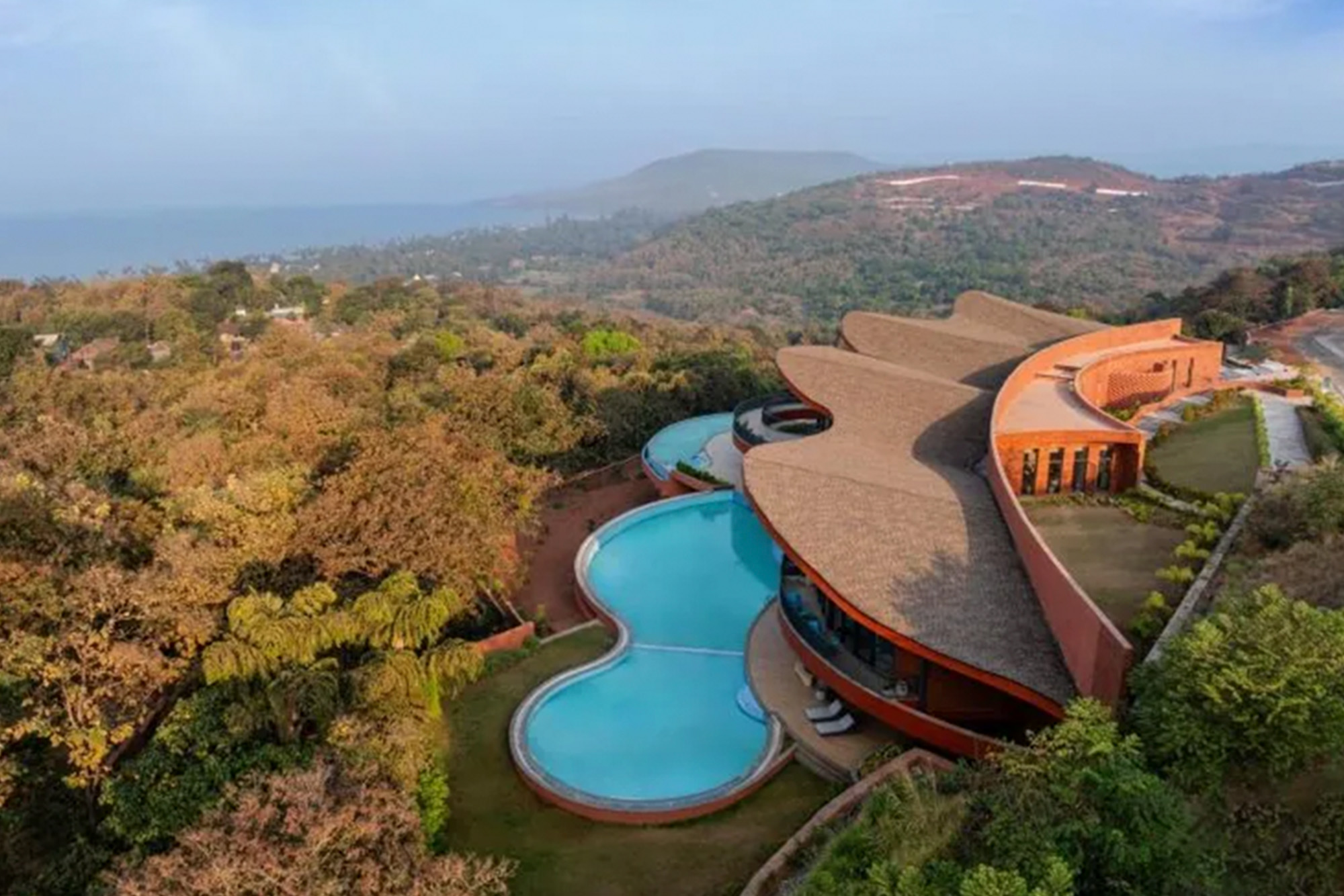 Situé sur une colline au relief abrupt dominant l’océan à Anjarle, dans l’État du Maharashtra en Inde, Crest Nine est un centre communautaire conçu comme un pôle de loisirs pour un ensemble de villas privées et dessiné par Sanjay Puri Architects.