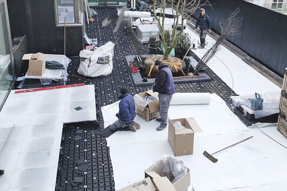 Optigrün Benelux, pionnier et leader européen des toitures végétalisées et des toitures-jardins, a développé à cet effet des boîtes de rétention innovantes (WRB), d'une capacité de stockage exceptionnelle pouvant atteindre 161 litres par mètre carré. Ces boîtes sont entièrement fabriquées à partir de polypropylène recyclé et peuvent être utilisées sous les toitures végétalisées, les jardins sur toiture et les toitures accessibles ou carrossables. Grâce à leur haute résistance à la compression (±800 kN/m²) et à leur faible poids propre, elles conviennent aussi bien aux nouvelles constructions qu'aux rénovations, même en cas de structure de toiture limitée.